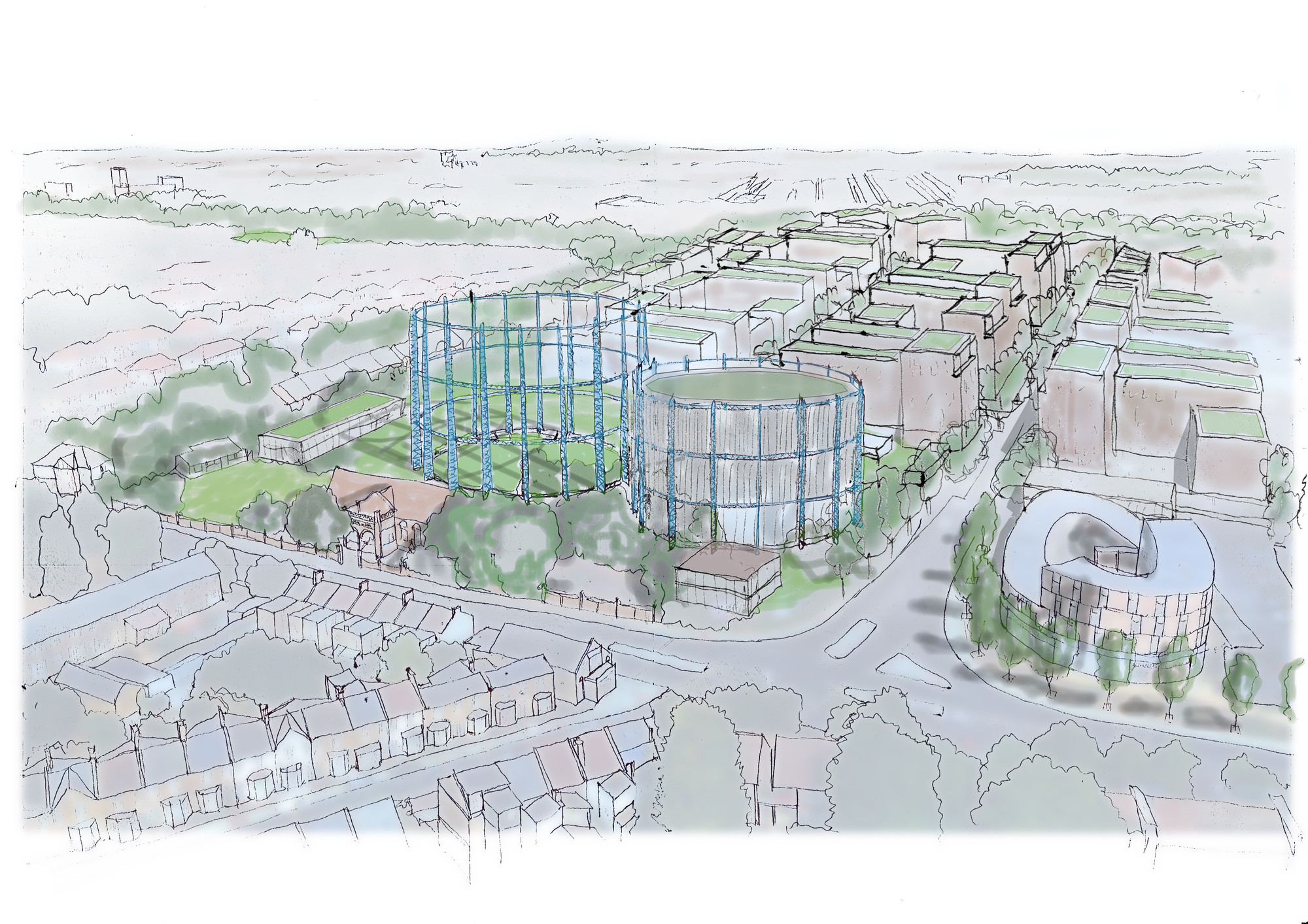 New development can provide morethan 4,000 new homes to help meet the urgent need for new housing, building a sustainable future at Bell Green that will involve high density mixed-use development that is highly connected with integrated transport infrastructure.Examples from London and Europe have been overlaid on the site to explore how Bell Green could be developed with an attractive scale.