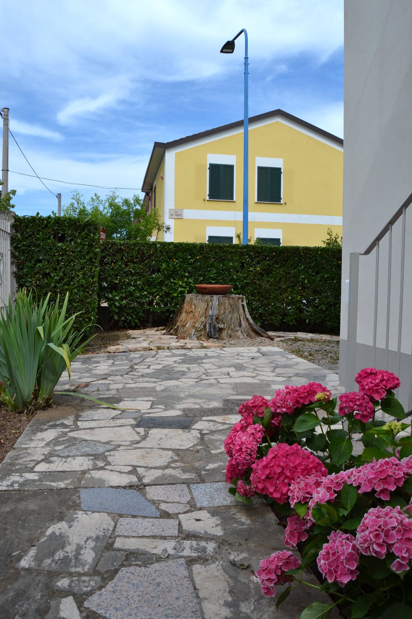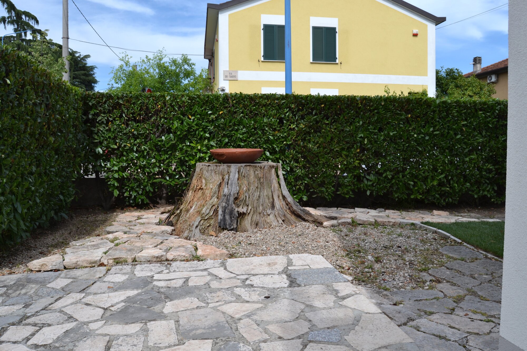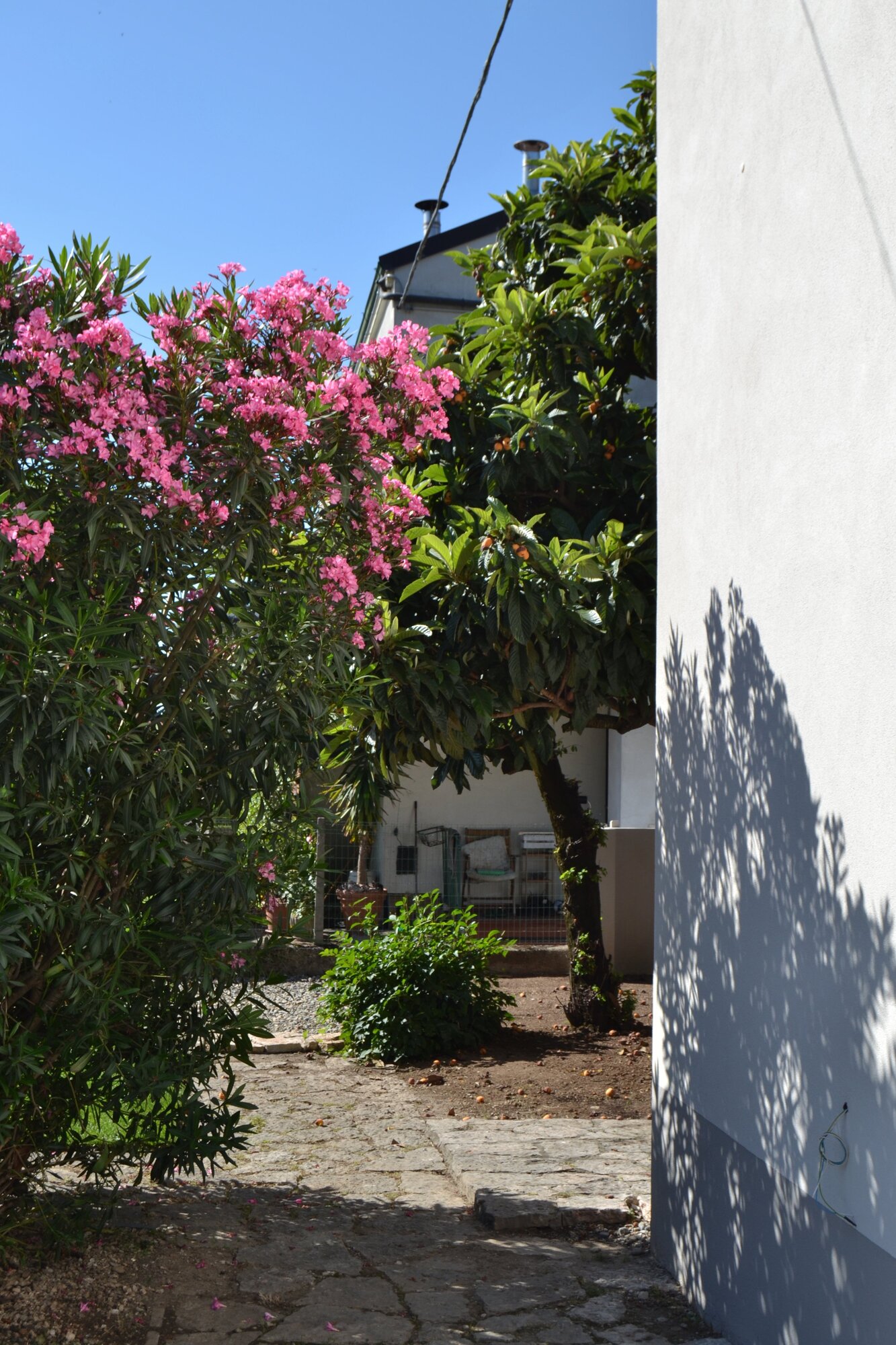 The kitchen is joined to the living room as a single space but is also completely separable thanks to a mobile glass wall. The bathrooms are embellished with mirrored built-in cupboards and panelling that ennoble them despite their small size. The exterior is treated as an English garden, thus as a series of small, self-contained and well-kept parts that form a unitary whole.