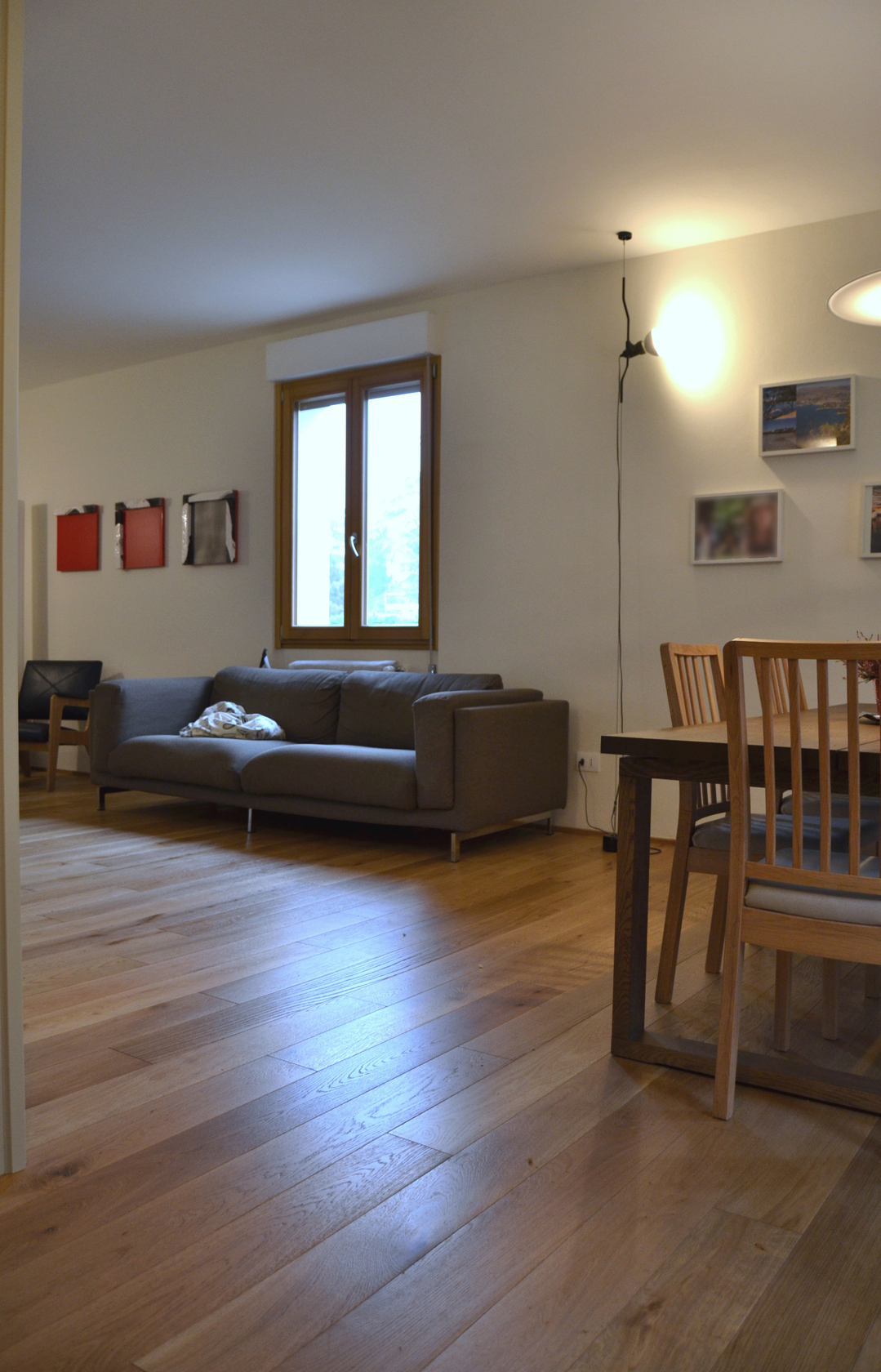 La luminosità e la versatilità degli spazi, i materiali, la distribuzione degli arredi portano complessivamente a questo risultato. Semplici mobili (in gran parte IKEA) convivono con dettagli d’epoca (l’abitazione è una INA casa dei primissimi anni ‘50), elementi nuovi, alcuni arredi storici e una illuminazione molto curata ma mai invasiva.