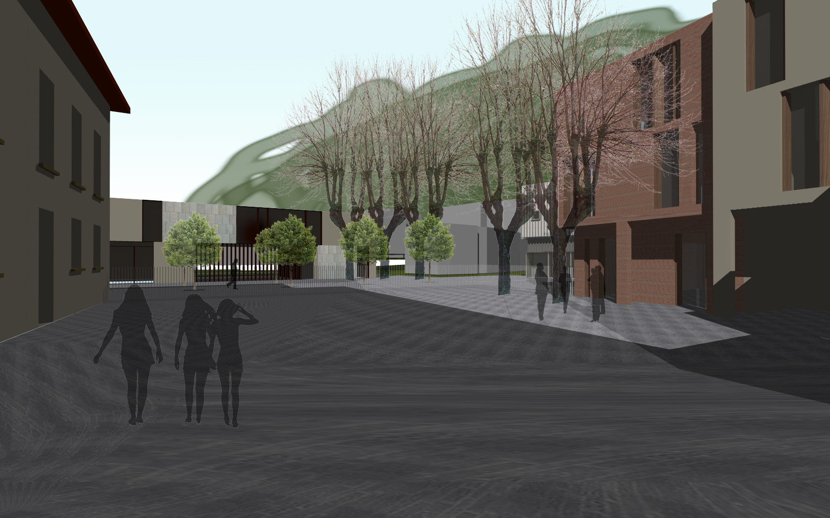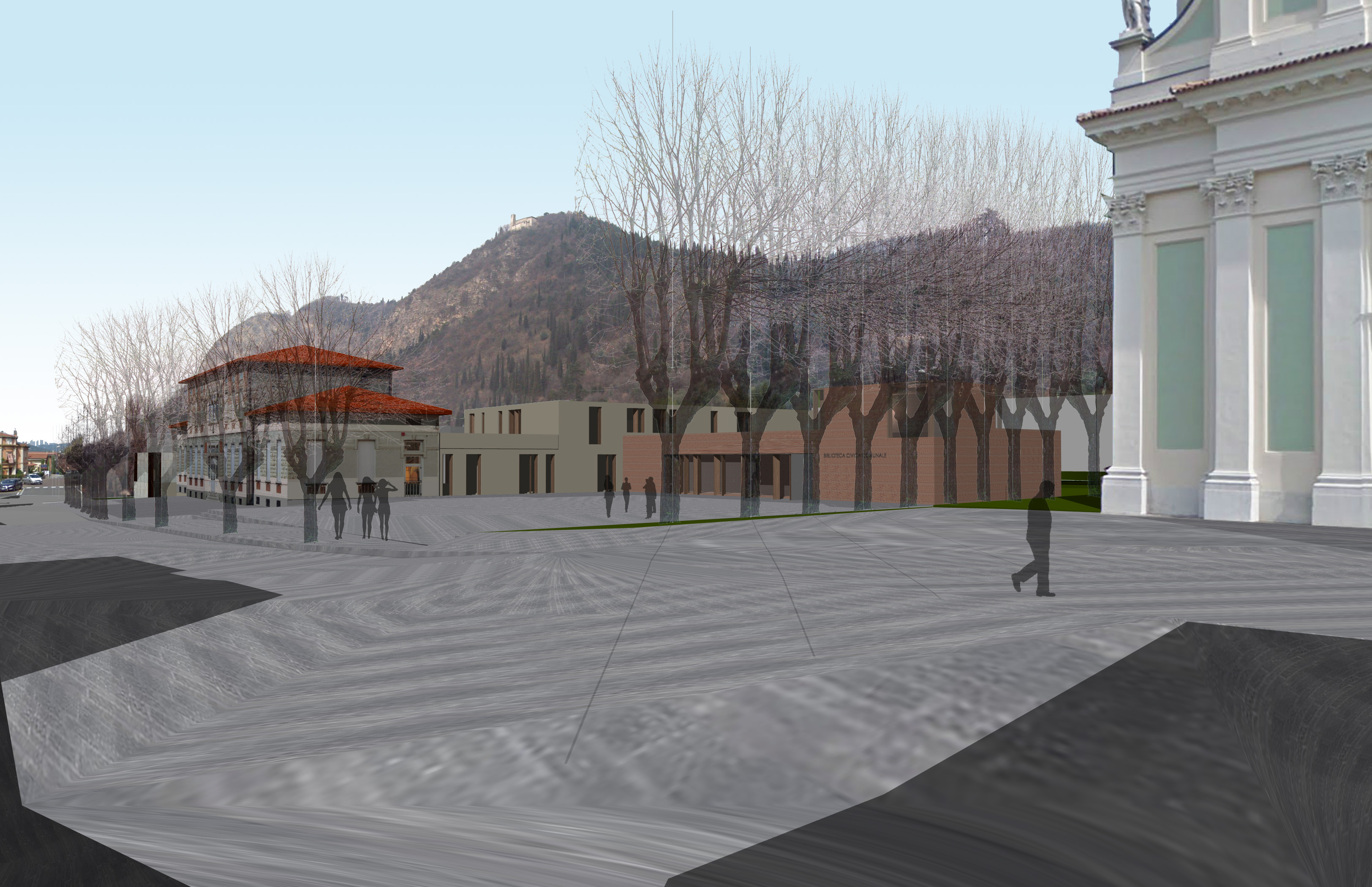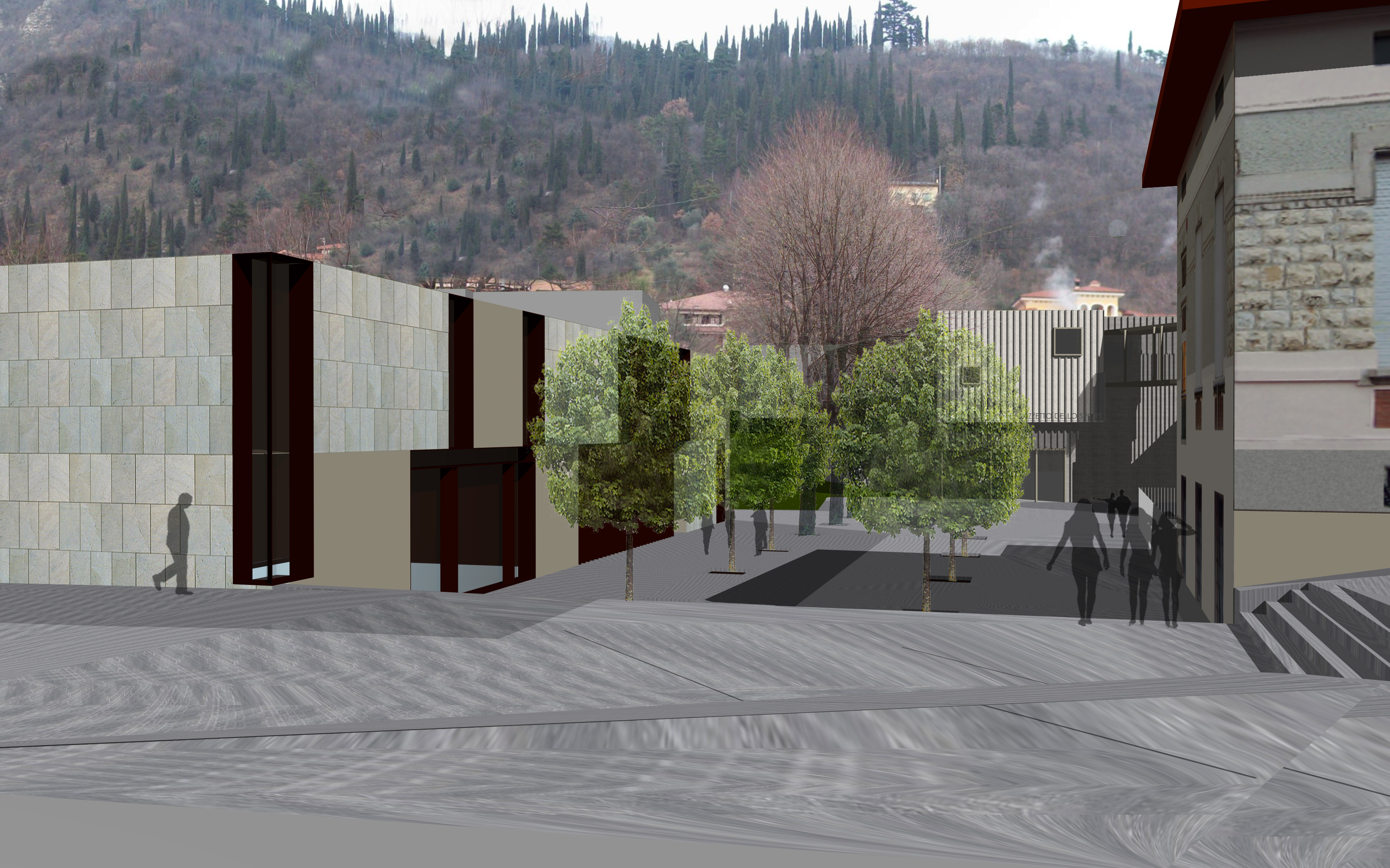 The project is comprises four buildings, which are the schools, the library and canteen, the sports hall / gym and the post office / headquarters of the local associations. There are also four open spaces: two pedestrian squares, one of which is the existing enlarged Piazza Raffelli, the school yard and the parking area of the entire complex.