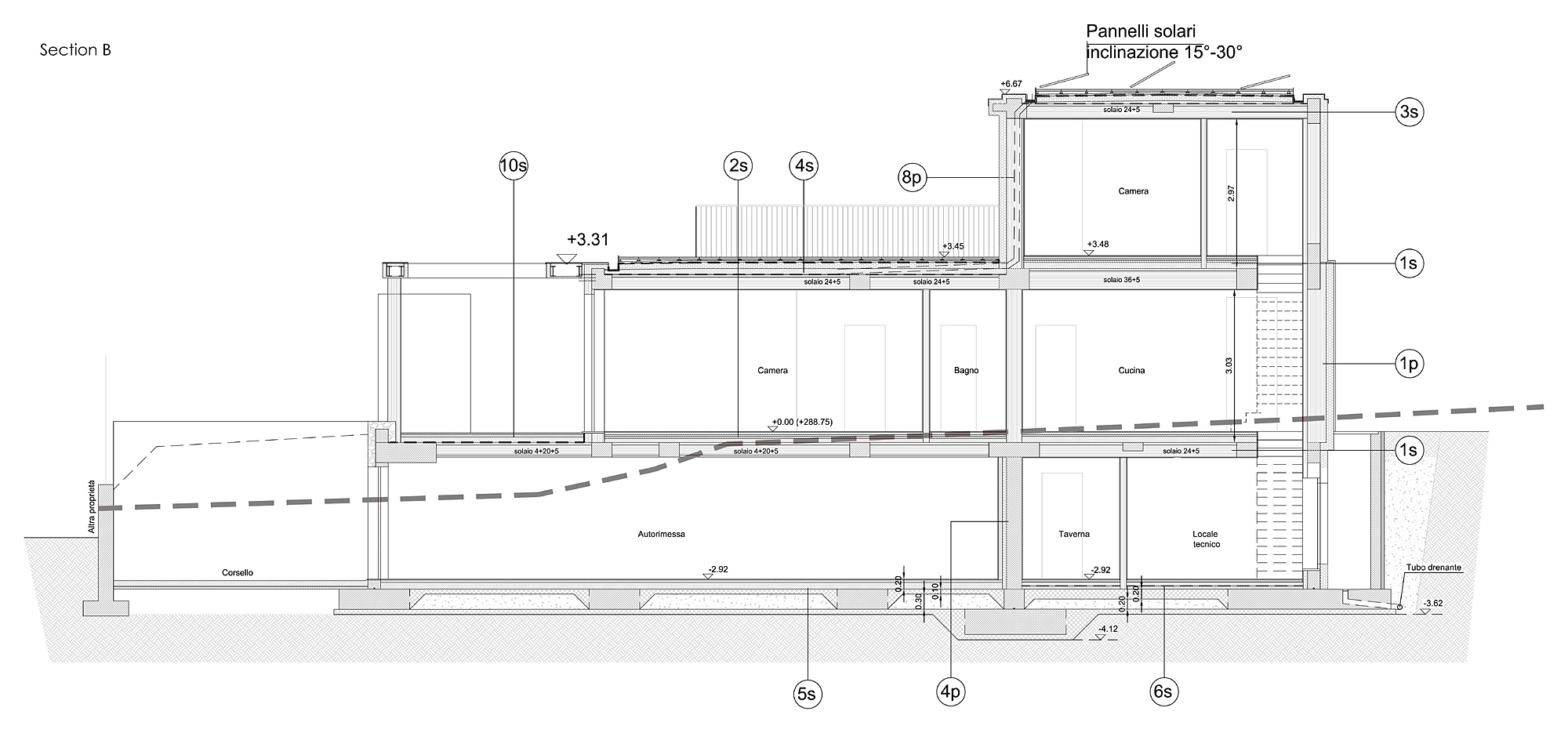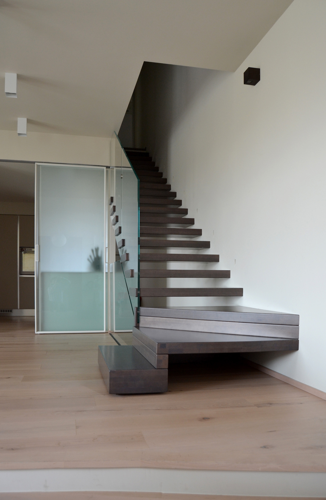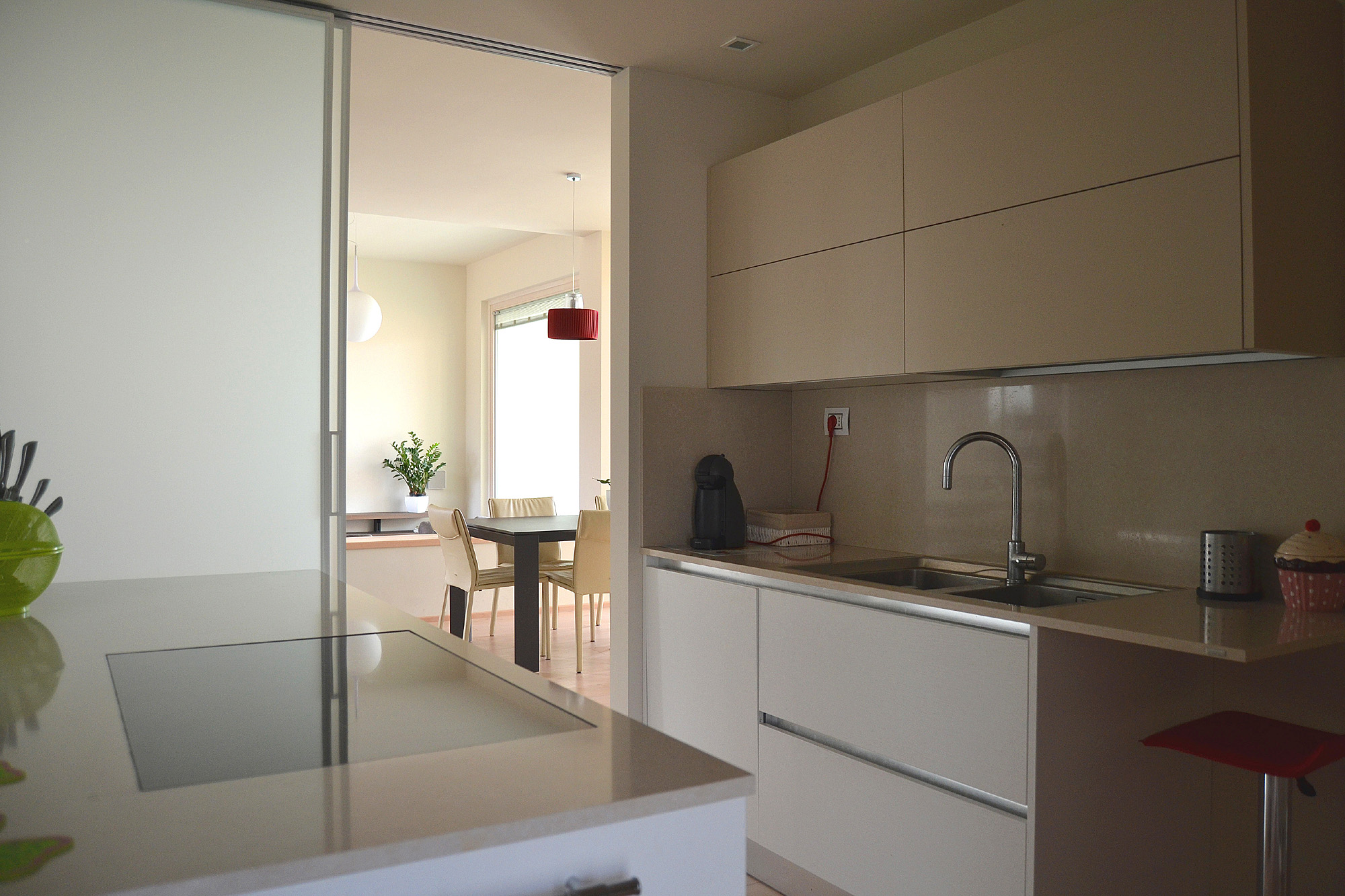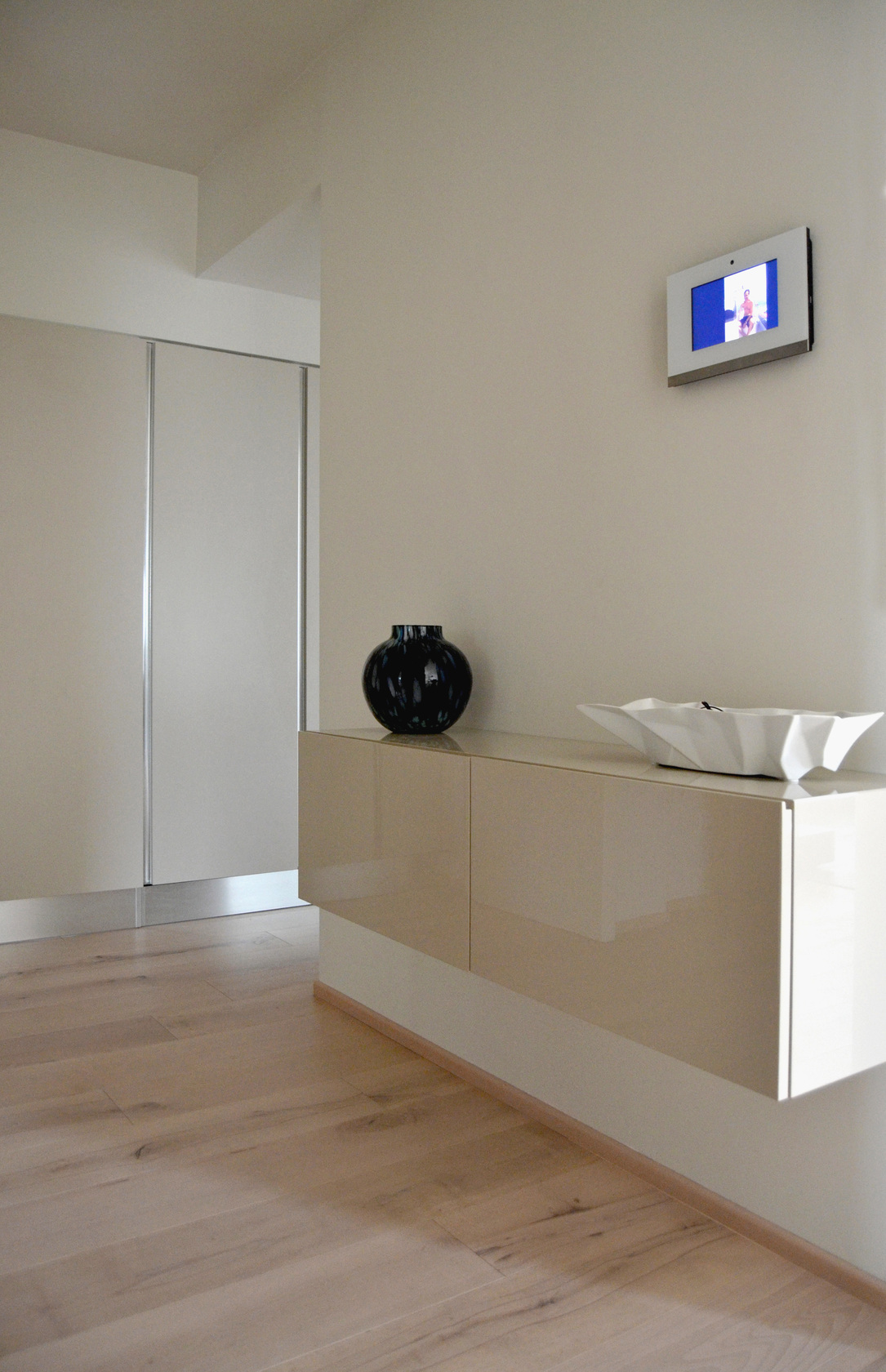 This building is also provided with a complex system of home automation that, based on ABB KNX system, was designed and realized by SEPA Snc. The system allows the complete control, both on site and from remote via tablet or smartphone, of lightning, openings, temperature of different spaces, music, TV, video doorphone etc. It is extremely intuitive and easy to use and customizable.