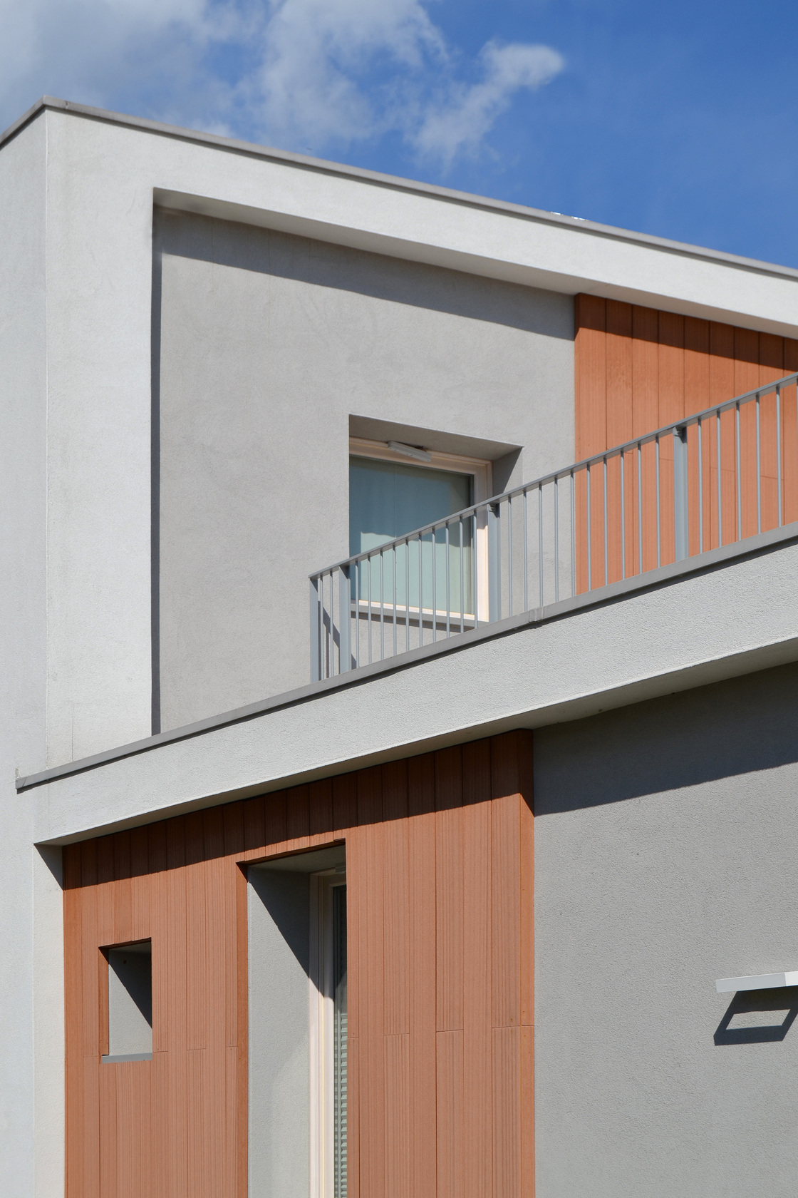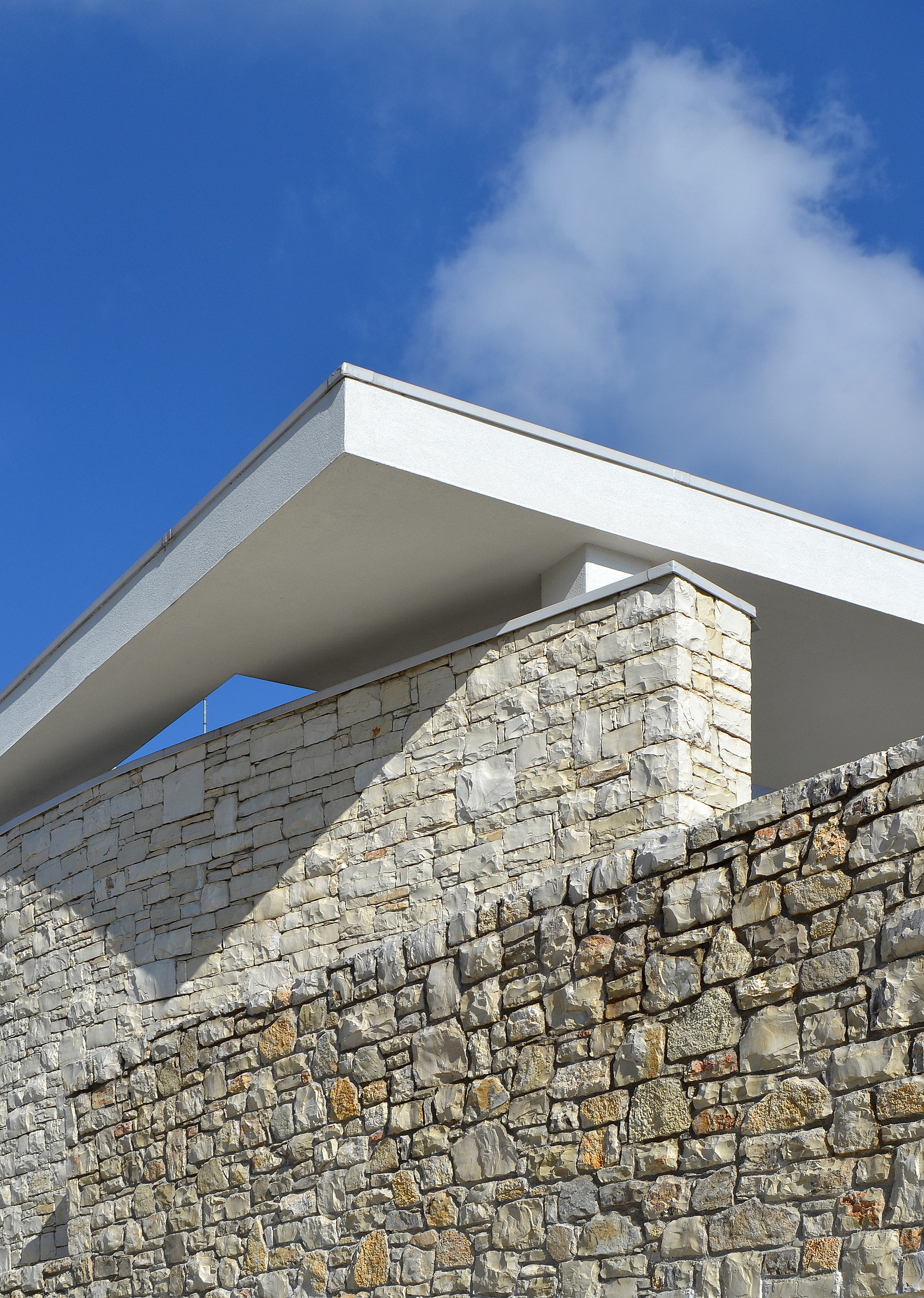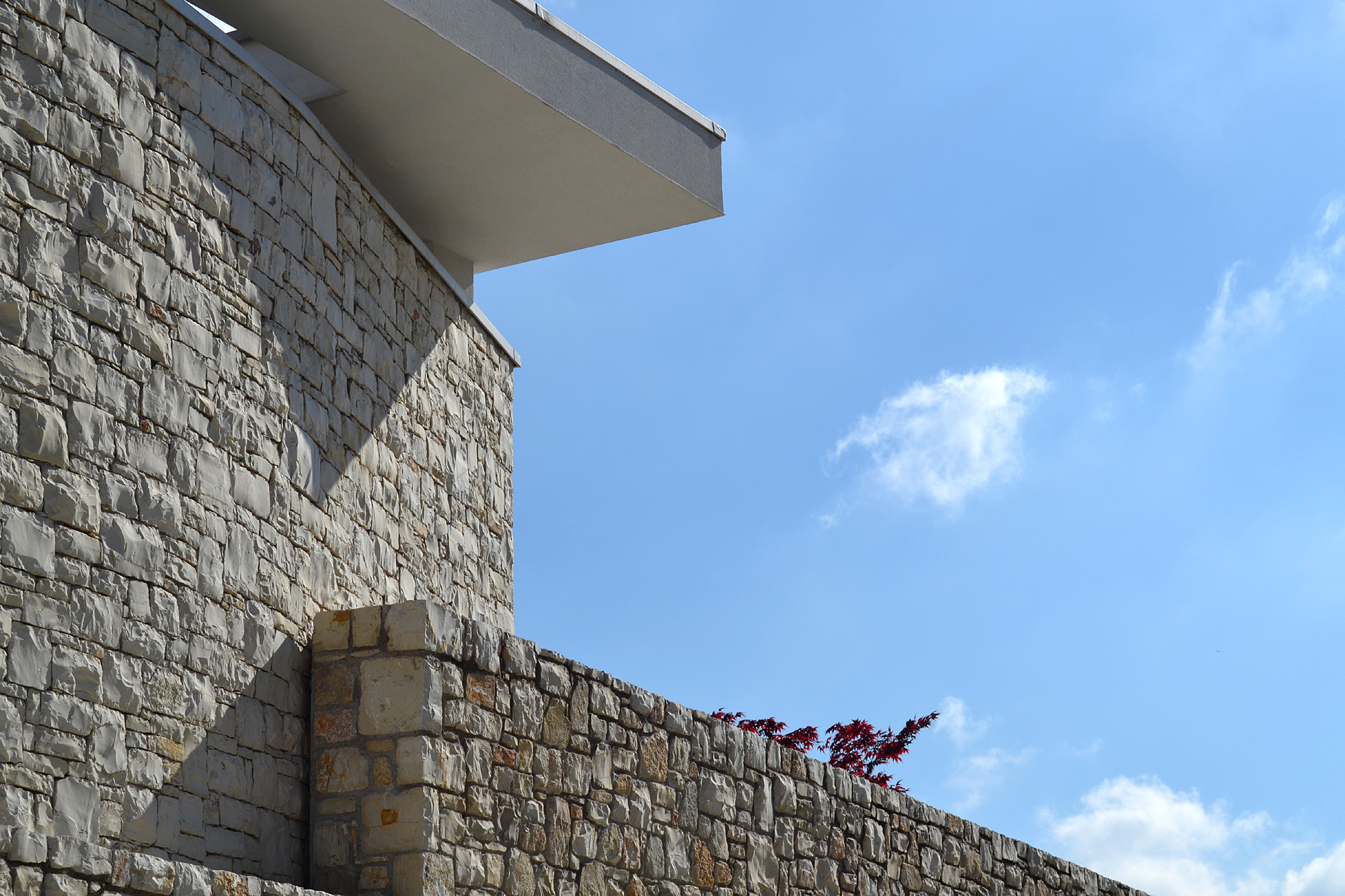 The sense of construction is conceptually derived from a mass of masonry that becomes more excavated as it becomes more exposed to the sun. Masonry is sometimes stone and more often it is plastered. The house derives conceptually from Italian ‘Cascine’, the rural buildings of Po Valley. Though the outcome may seem completely different, this building, as the Cascine, is of solid masonry, with very little openings on the North facade and a great South-oriented portico. This is also strongly energy efficient. There is also a large use of local stones and wood.