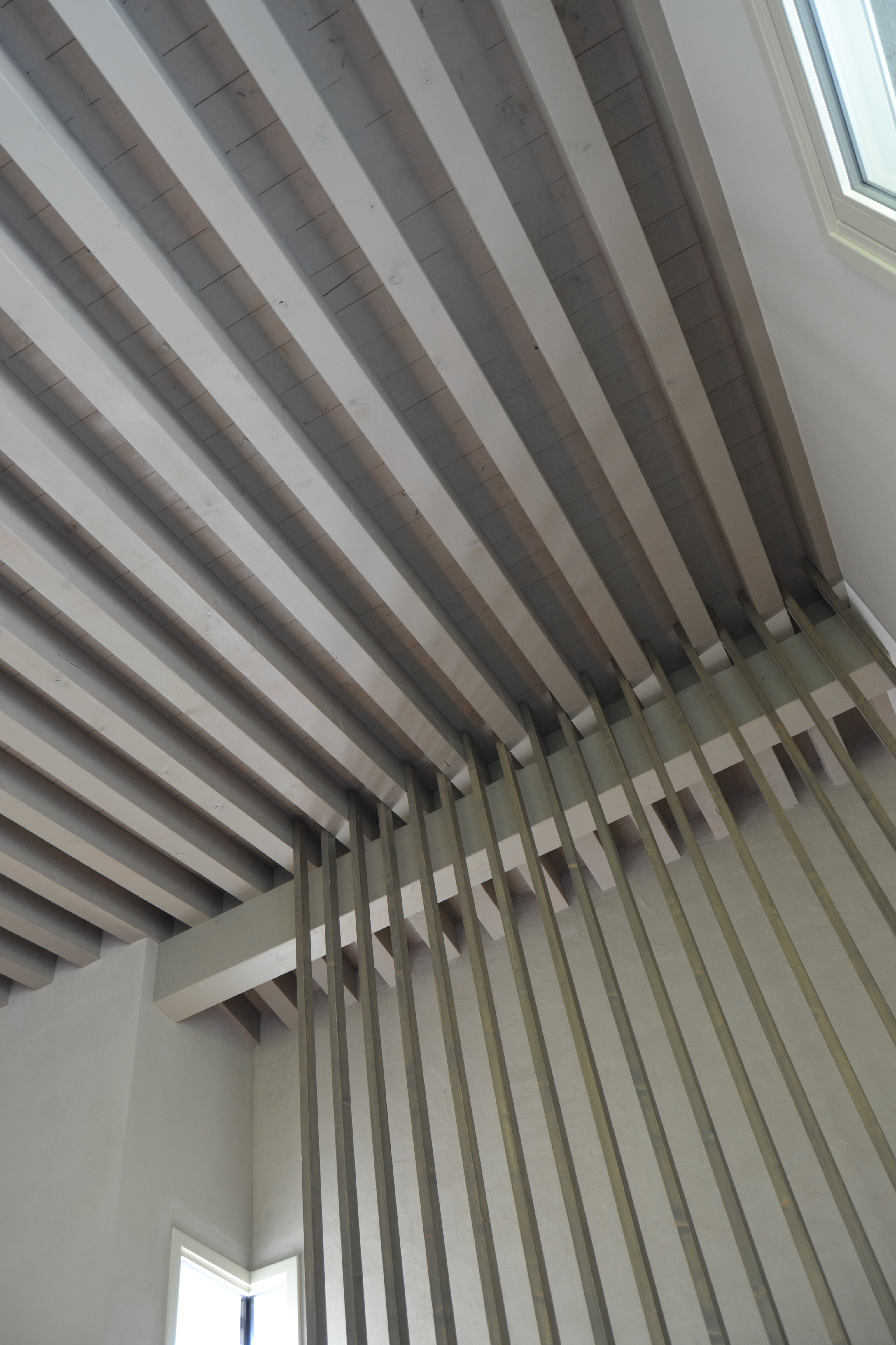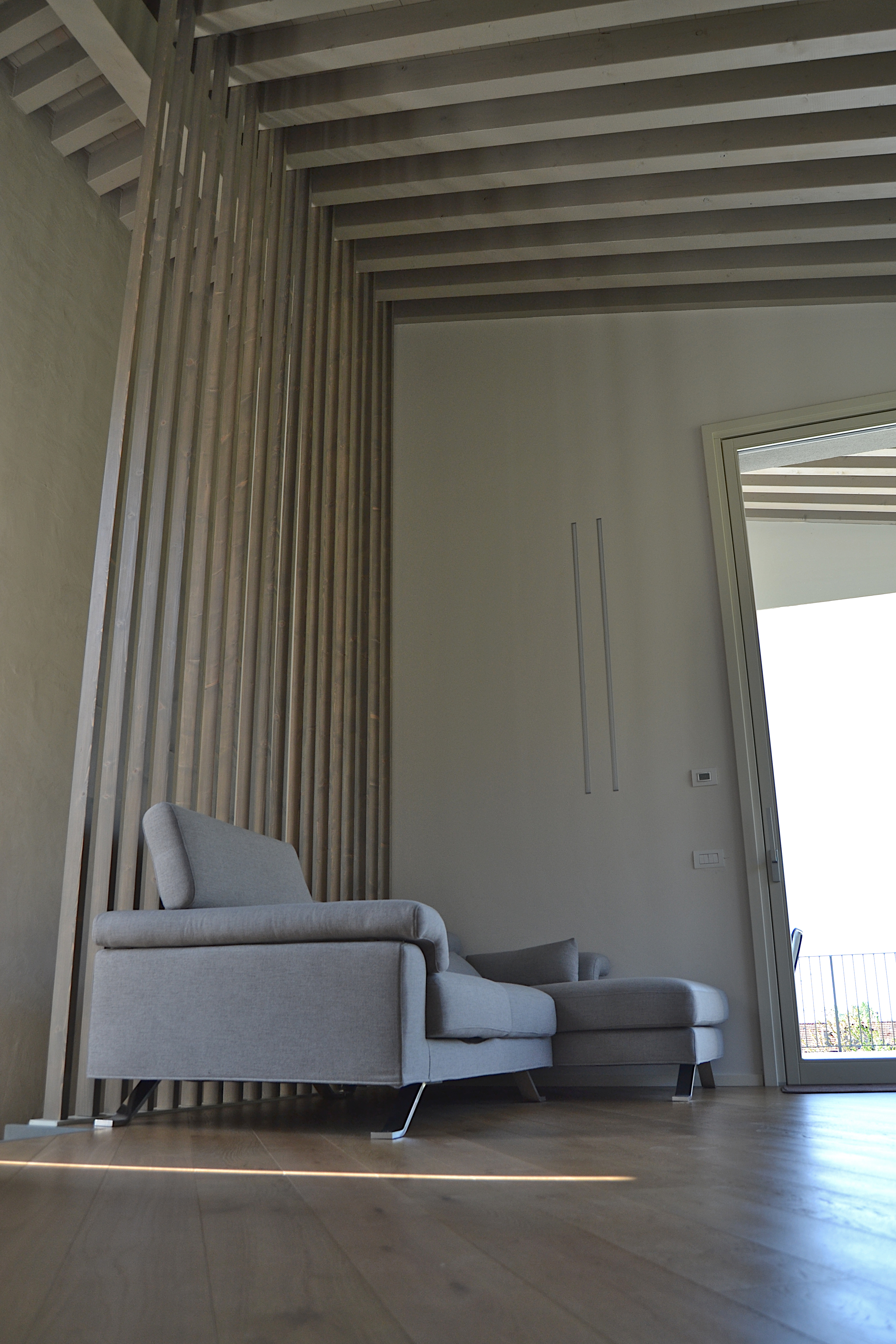 L’edificio esistente ha una copertura a falde, come tutte le case nel piccolo villaggio di Baiana, così l’ampliamento cerca di parlare lo stesso linguaggio pur interpretandolo in una maniera più contemporanea e lineare.